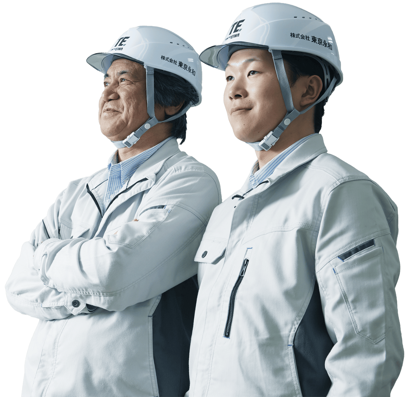 東京永和は「社員が幸せであること」が良い仕事につながると本気で考えています。働きやすさや健康への配慮はもちろん、利益を社員へ還元するために、給与はもちろん資格取得や技術向上など積極的に投資。無理をさせるのではなく、一人ひとりが続けやすい環境づくりを何より大切にしています。